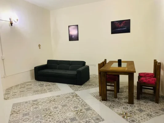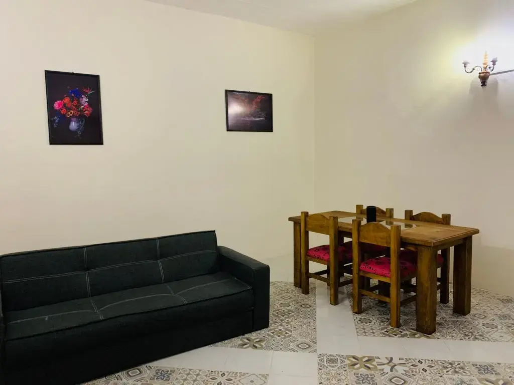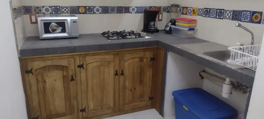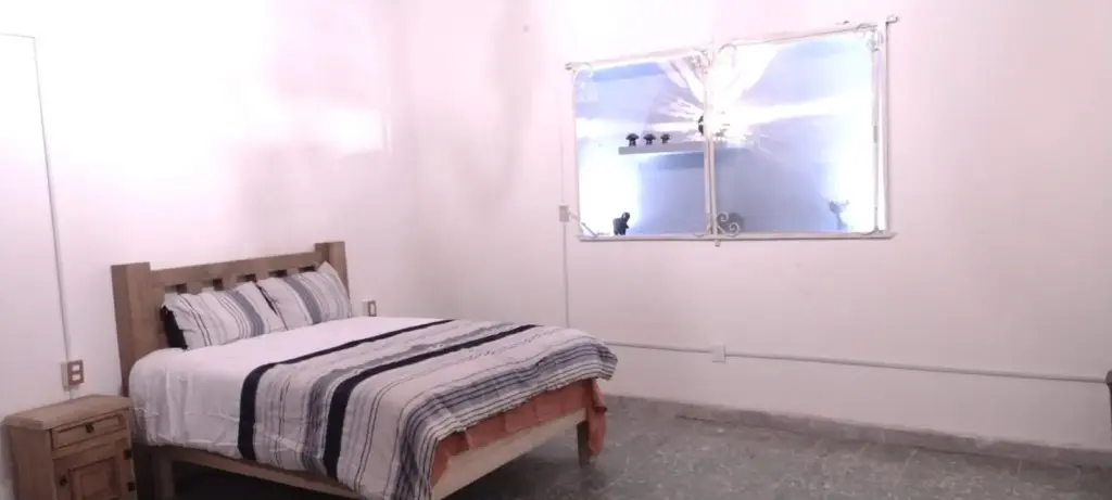 The interior features a comfortable bedroom with a plush Queen-size bed for your rest. This cozy apartment for rent in Oaxaca includes a spacious closet and a private bathroom. In the living area, you will find a sofa bed for your visiting guests. The dining room and fully equipped kitchen allow you to cook delicious local meals. Everything in the space feels bright, clean, and ready for your immediate arrival.