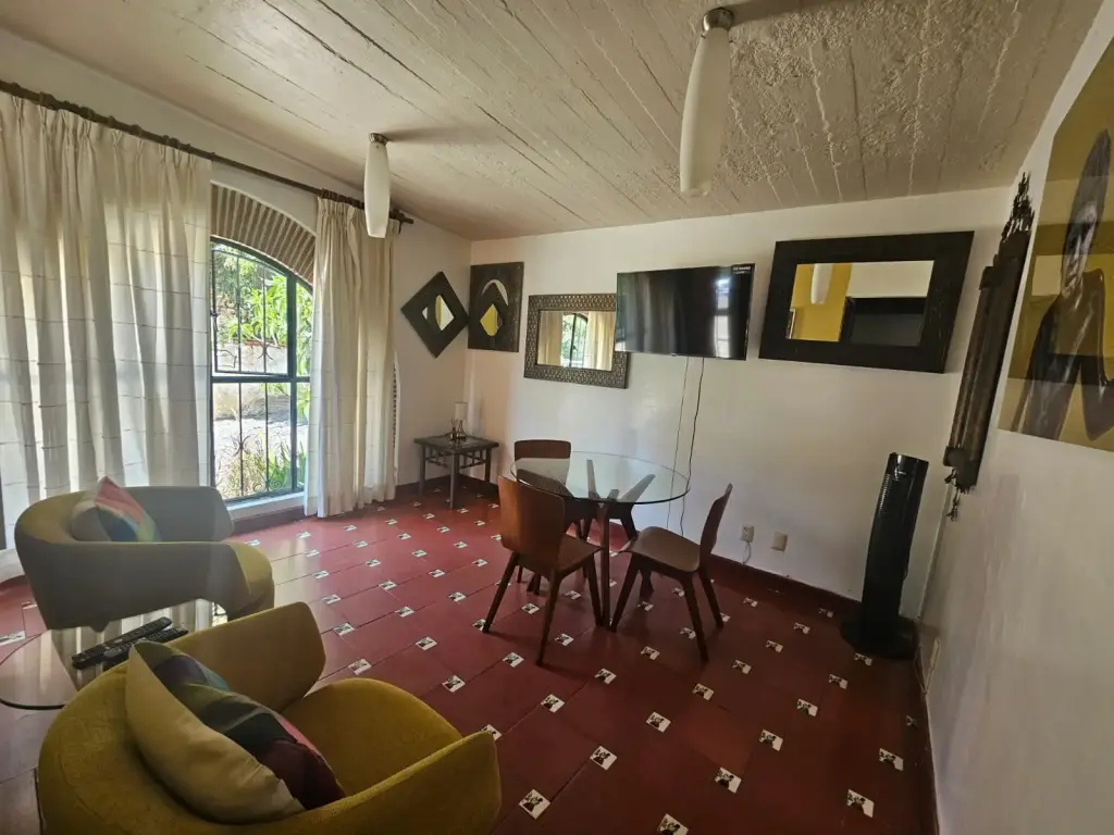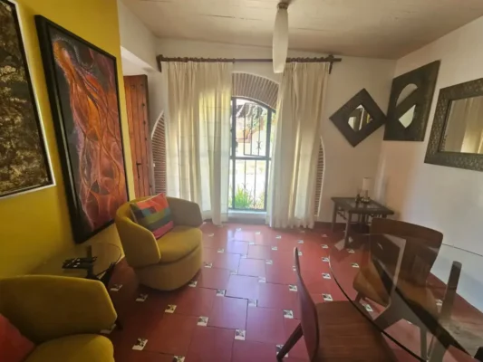 Experience the peace and beauty of San Felipe del Agua in a high Quality - Furnished Bungalow in San Felipe del Agua. Oaxaca’s most prestigious and serene neighborhood. This private, fully furnished bungalow is nestled in a lush environment, surrounded by mature trees and vibrant plants, offering a quiet retreat from the city hustle.