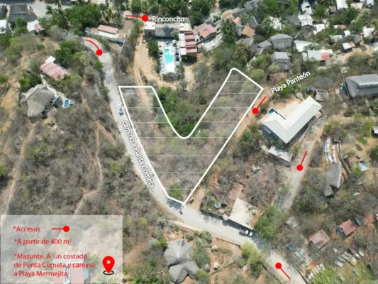 Land lots located in Mazunte, Oaxaca, within a privileged area featuring ocean views and direct access from a paved road, ensuring easy and convenient access.
