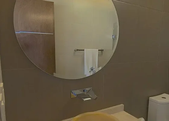 - -‐ 2 full bathrooms with marble countertops, onyx sinks, and glass enclosures